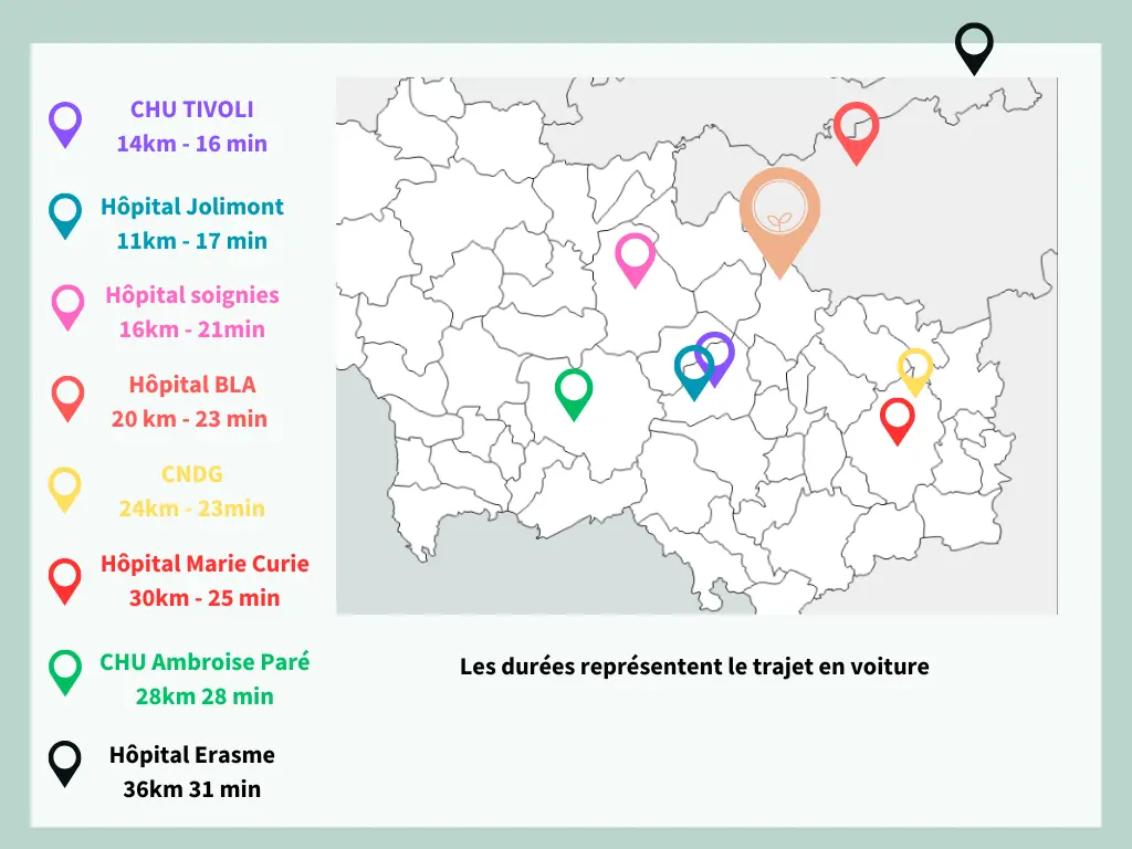 👉 Voici la carte des hôpitaux les plus proches de La Bulle, avec les distances et durées de trajet en voiture :